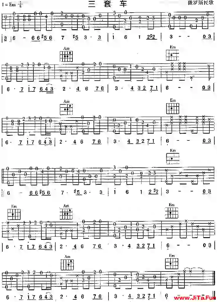 《三套車(俄羅斯民歌)》吉他譜(1張圖片) 1月前发布 0520 粵語歌曲諧音教學 - Youtube官方頻道 類別:民族 歌手:未知 來源:網絡 粵語歌曲諧音教學 - Youtube官方頻道 THE END吉他譜大全# 民歌喜歡請點贊,記得分享給朋友喲~收藏0
