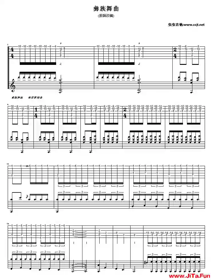 在殷飆之前的八十年代初期,也有不少的人將《彝族舞曲》改編成吉他獨奏曲,出現在一些中級古典吉他教材中,彈出來也非常動聽。殷飆改編的曲子的確有其獨到之處,他充分運用了古典吉他的演奏特點,聽來可謂與琵琶原曲的演奏效果不相上下。