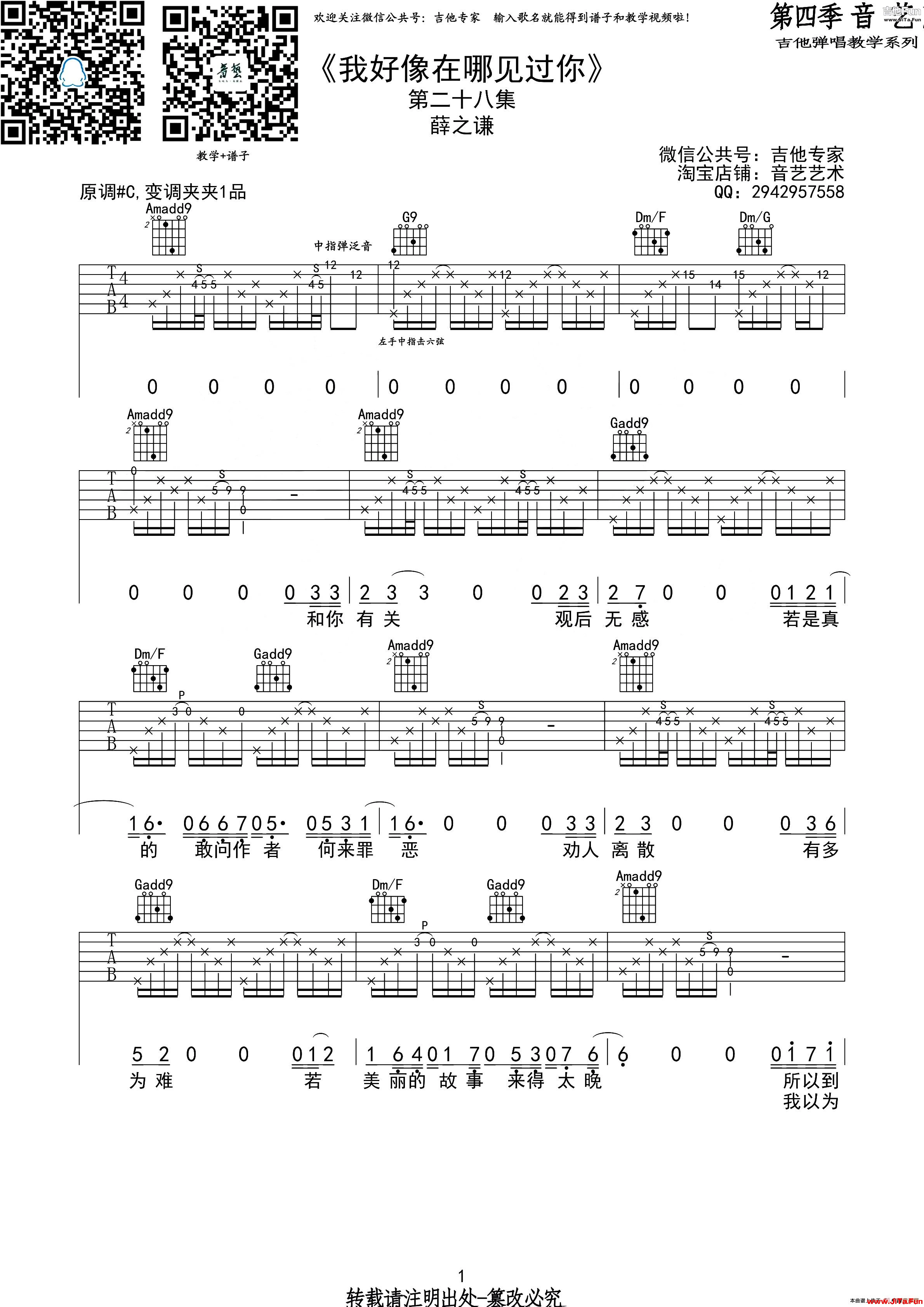 薛之謙《我好像在哪見過你(吉他六線譜)》吉他譜(共4張圖片) 前天发布 0280 粵語歌曲諧音教學 - Youtube官方頻道 類別:流行 歌手:薛之謙 來源:譜網 粵語歌曲諧音教學 - Youtube官方頻道 THE END吉他譜大全# 薛之謙喜歡請點贊,記得分享給朋友喲~收藏0
