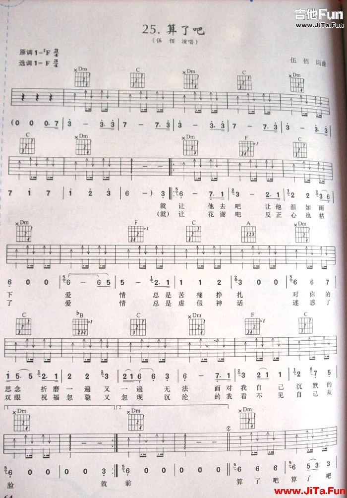 伍佰《算了吧》吉他譜 6小時前发布 080 粵語歌曲諧音教學 - Youtube官方頻道 類別:流行 歌手:伍佰 來源:樂友joiln傳譜 粵語歌曲諧音教學 - Youtube官方頻道 THE END吉他譜大全# 伍佰喜歡請點贊,記得分享給朋友喲~收藏0