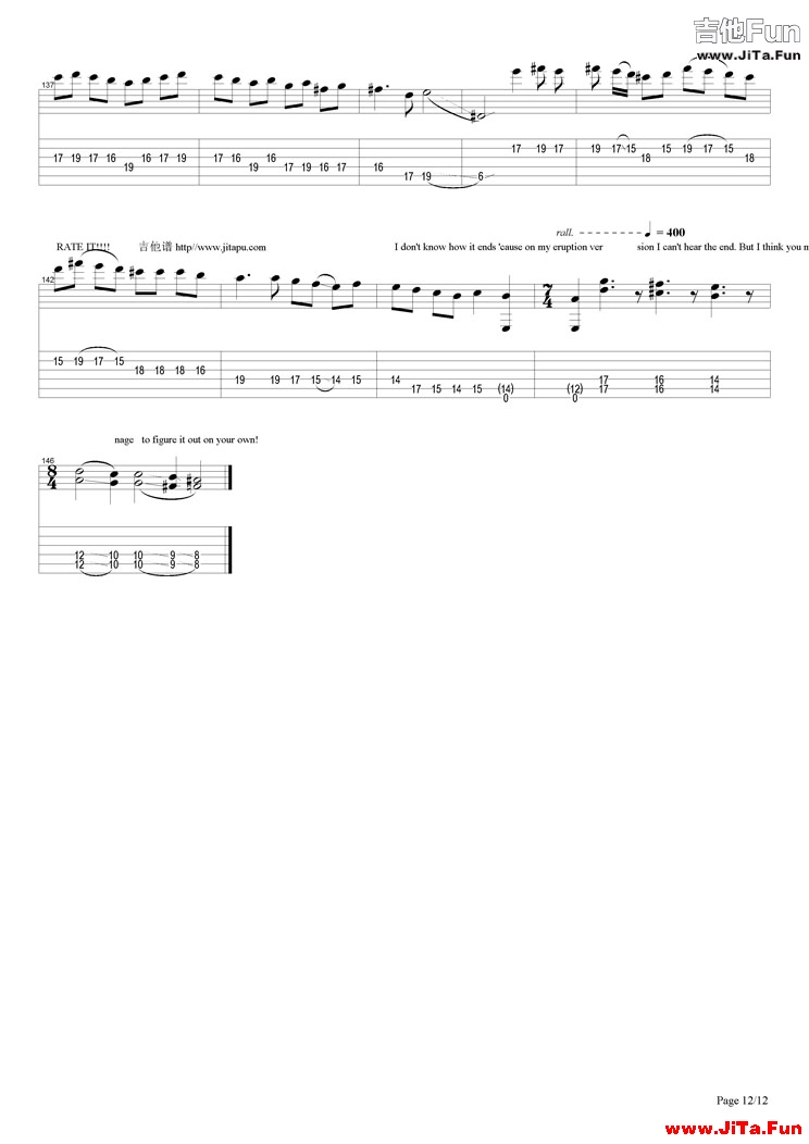 Van Halen(范海倫)《Eruption》吉他譜 6小時前发布 070 粵語歌曲諧音教學 - Youtube官方頻道 類別:流行 歌手:Van Halen(范海倫) 來源:樂友joiln傳譜 粵語歌曲諧音教學 - Youtube官方頻道 THE END吉他譜大全# 海倫喜歡請點贊,記得分享給朋友喲~收藏0