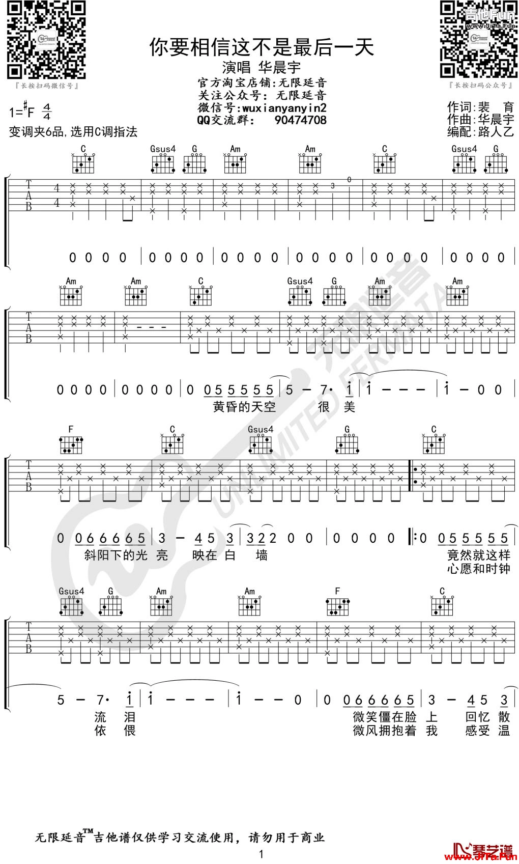 華晨宇《你要相信這不是最後一天》吉他譜_C調彈唱譜(共3張圖片) 51分鐘前发布 040 粵語歌曲諧音教學 - Youtube官方頻道 (來源:未知) 粵語歌曲諧音教學 - Youtube官方頻道 THE END吉他譜大全# 華晨宇喜歡請點贊,記得分享給朋友喲~收藏0