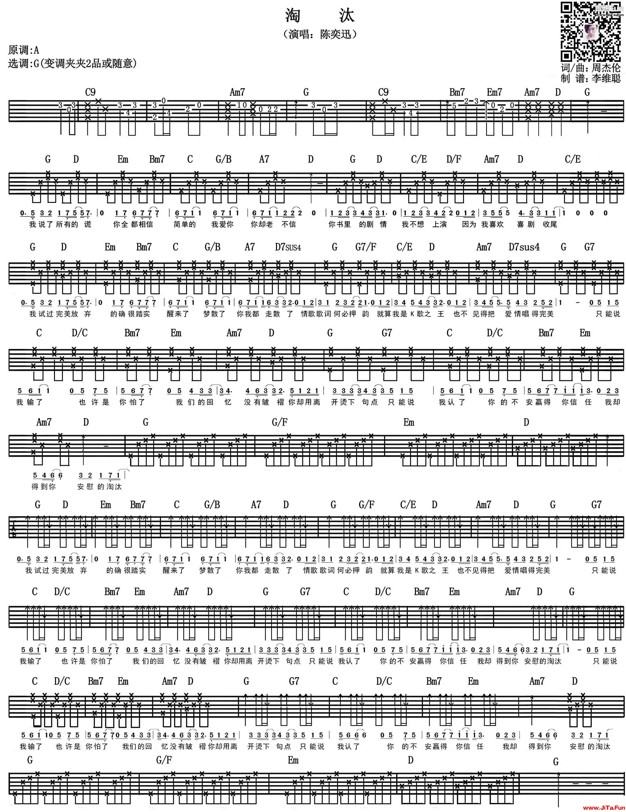陳奕迅《淘汰-陳奕迅-吉他譜-彈唱》吉他譜(1張圖片) 2小時前发布 030 粵語歌曲諧音教學 - Youtube官方頻道 類別:流行 歌手:陳奕迅 來源:樂友李維聰上傳 粵語歌曲諧音教學 - Youtube官方頻道 THE END吉他譜大全# 陳奕迅喜歡請點贊,記得分享給朋友喲~收藏0