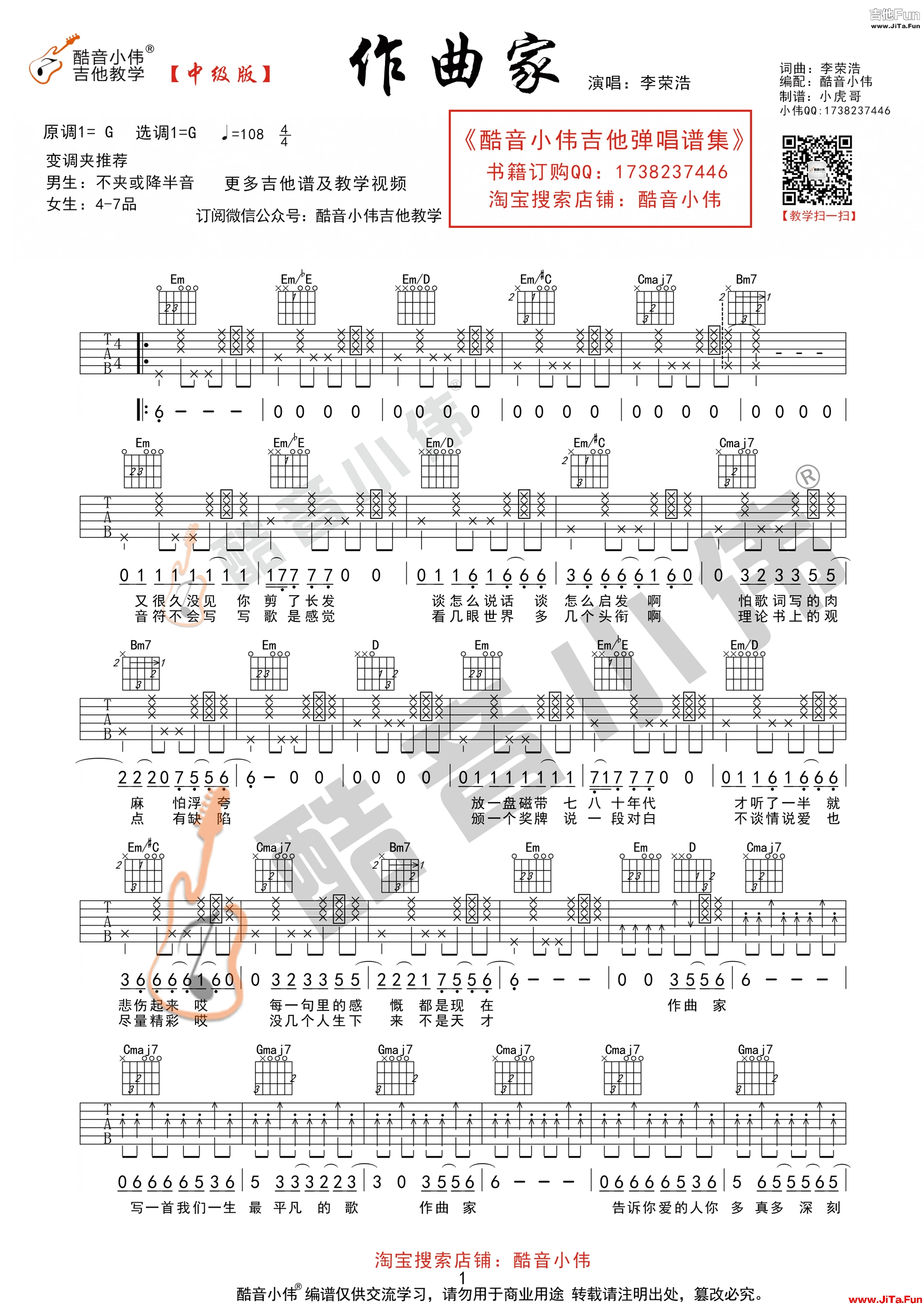 李榮浩《作曲家》吉他譜G調中級版原版(酷音小偉吉他教學)》吉他譜(共2張圖片) 1小時前发布 050 粵語歌曲諧音教學 - Youtube官方頻道 類別:流行 來源:酷音小偉記譜 粵語歌曲諧音教學 - Youtube官方頻道 THE END吉他譜大全# 李榮浩喜歡請點贊,記得分享給朋友喲~收藏0