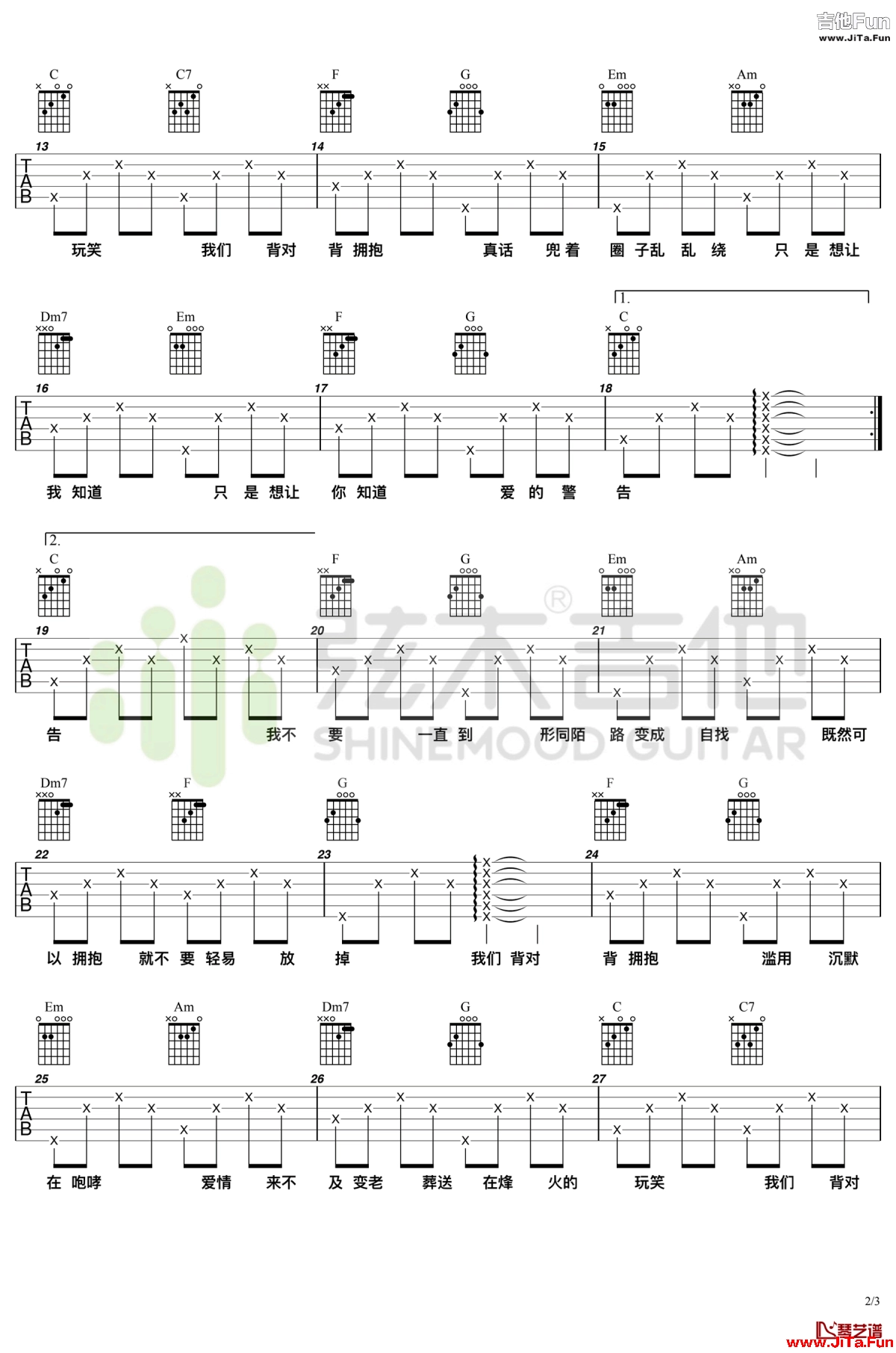 林俊傑《背對背擁抱》吉他譜_C調彈唱_六線譜(共3張圖片) 1小時前发布 020 粵語歌曲諧音教學 - Youtube官方頻道 (來源:未知) 粵語歌曲諧音教學 - Youtube官方頻道 THE END吉他譜大全# 林俊傑喜歡請點贊,記得分享給朋友喲~收藏0